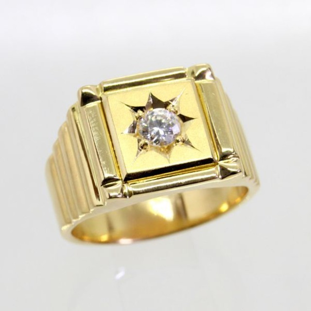 18金 ダイヤ 0.284ct 印台 メンズリング 17.5号 【中古】