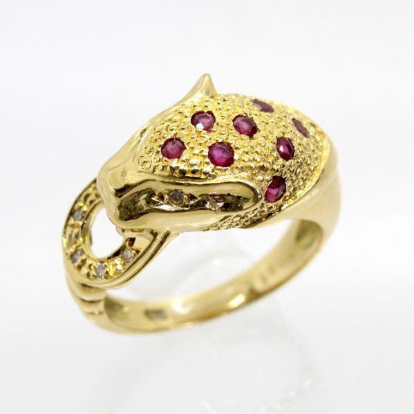 商品名:18金 ルビー 0.35ct ダイヤ パンサーデザイン リング