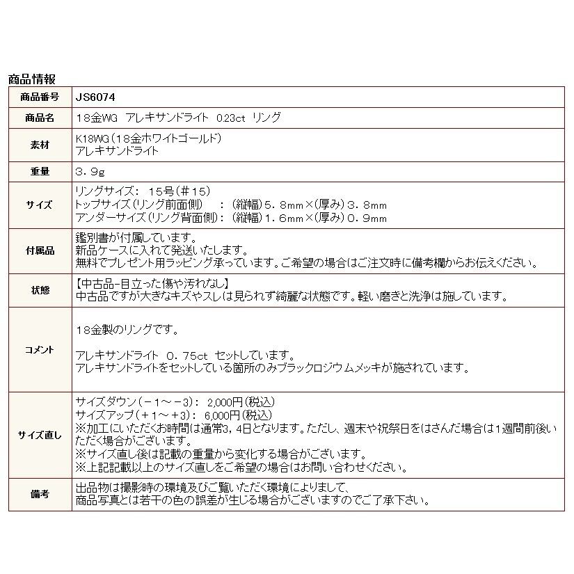 18金WG アレキサンドライト 0.75ct リング 15号【中古】