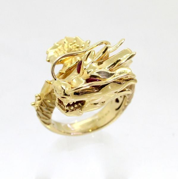 18金製の龍デザインのメンズリングです。