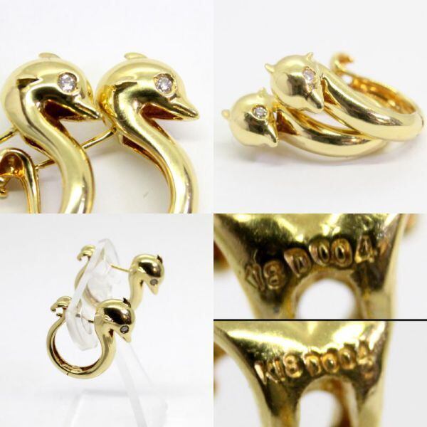 18金 ダイヤ 計0.08ct イルカデザイン ピアス 【中古】