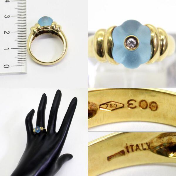 18金 ブルートパーズ,ダイヤ リング 13号【中古】