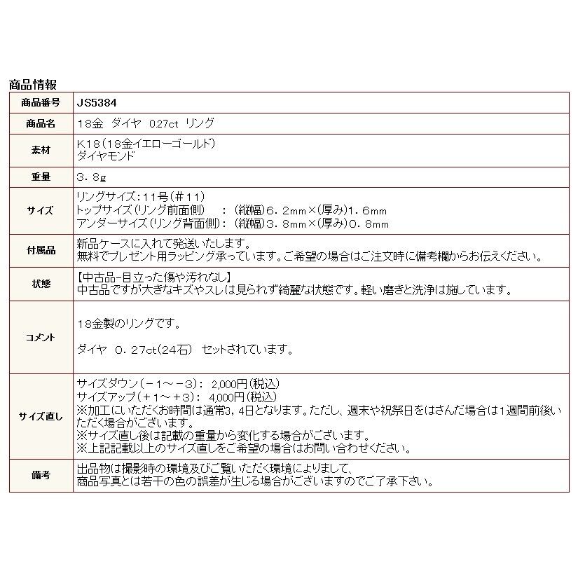 商品名:18金 ダイヤ 0.27ct リング