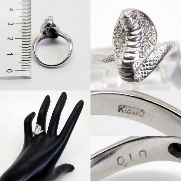 商品名: 18金WG コブラデザイン ダイヤ 0.10ct リング